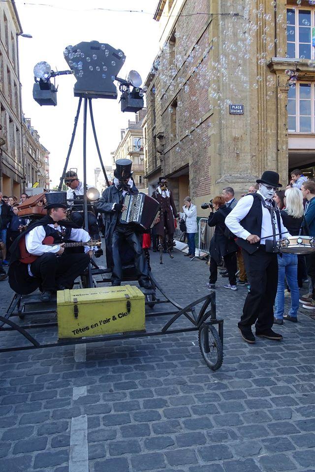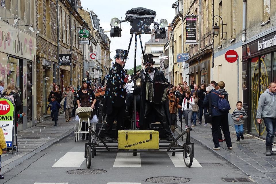 L'univers mécanique et industriel proposé par Têtes en l'air revisite l'Angleterre victorienne en l'habillant de tous ces artifices qui plongent les esprits vagabonds dans la trop réaliste fiction du Steampunk... Leur secret ? Une machine à recycler le passé vous transporte là où se mêlent bourgeois et anarchistes, héros et assassins, charlatans et savants fous... engrenages, poivrières, sabres et automobile blindée... L'improbable machine des Rêveurs de Bulles... Et quand vient le soir, pour que vos rêves flamboient, pyrotechnie et cracheurs de flammes.